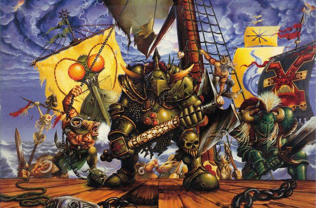 Technically I could use a Silver Tower of Tzeentch to get a magic user and still adhere to the “Nurgle Fleet List”, but screw that (1993, WTF were you thinking?), I’m not sullying the theme with Tzeentch stuff, of all things. I will be house ruling to get Nurgle Sorcerers in my fleet, thank you very much.