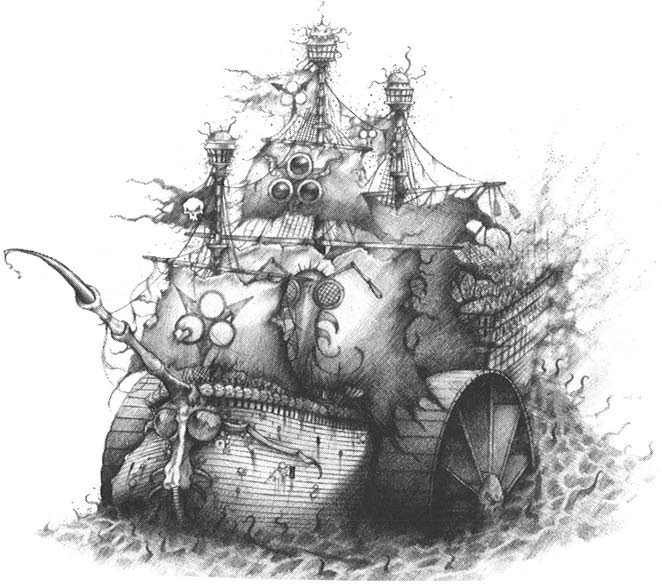 I really quite like the Plagueship sculpt, largely because I want to play games with fantasy pirate ships and that design keeps the silhouette of a pirate ship pretty closely, excluding the paddles.