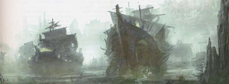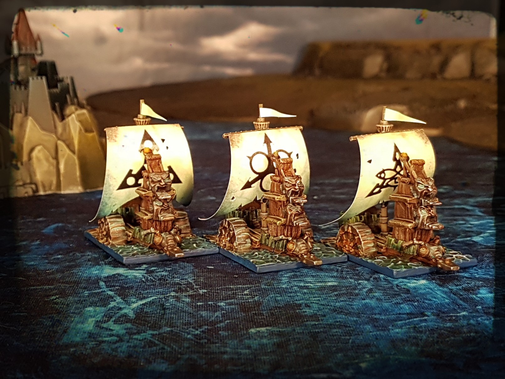 MoW is very goofy in numerous places, with shark faced ships, ships with giant bells, ships with big hammers, a boat with a face and wings etc. Even in comparison with the often very OTT aspects of the Warhammer settings and games, MoW often looks pretty daft.