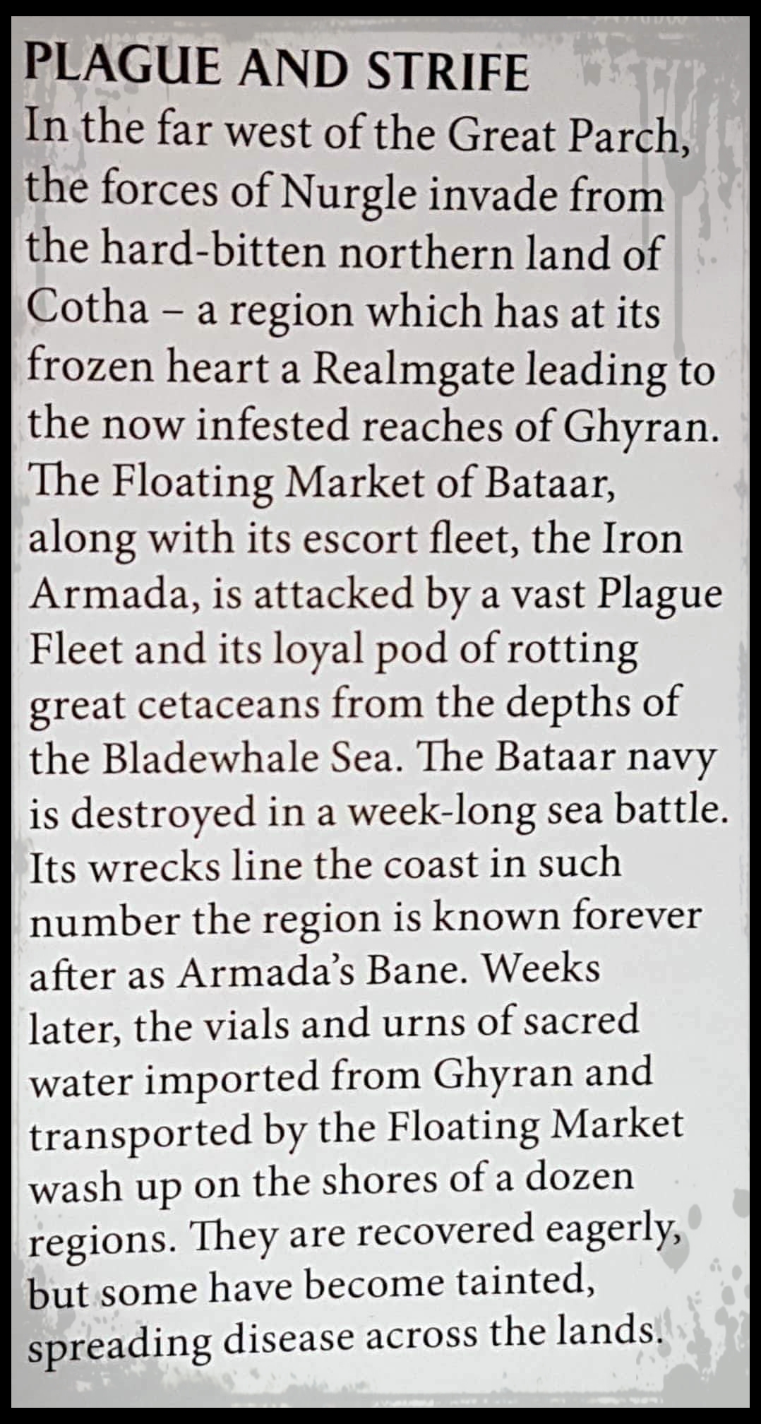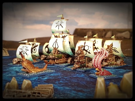 A Nurgle plague fleet is mentioned in the new Age of Sigmar rulebook interestingly enough. The description ties back nicely into how I planned the composition of my fleet: a selection of Nurgle ships with various diseased sea monsters in tow.