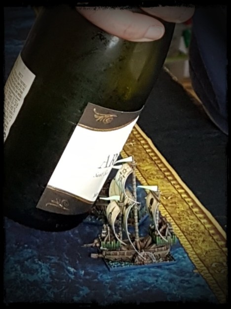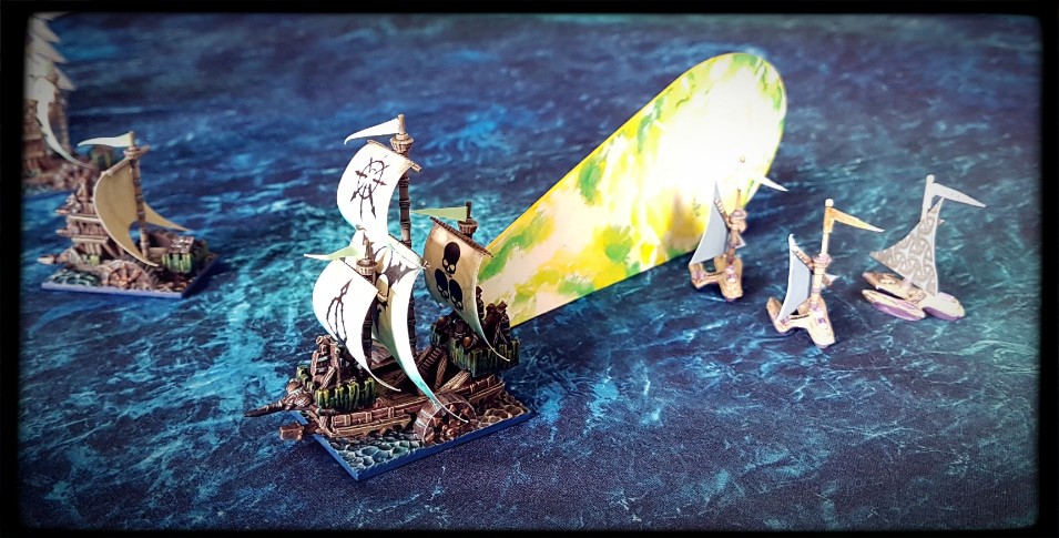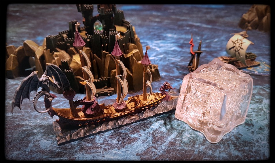 A magically summoned fatberg, dismissed as a non-threat half an hour earlier, manages to connect with the “Studio Fifty-Four”. My laughter would have been much louder had my Chaos Warriors not accidentally left their flagship undefended and subsequently scuttled while searching for treasure on Castle Island. Sigh. I be a-blamin’ the grog.