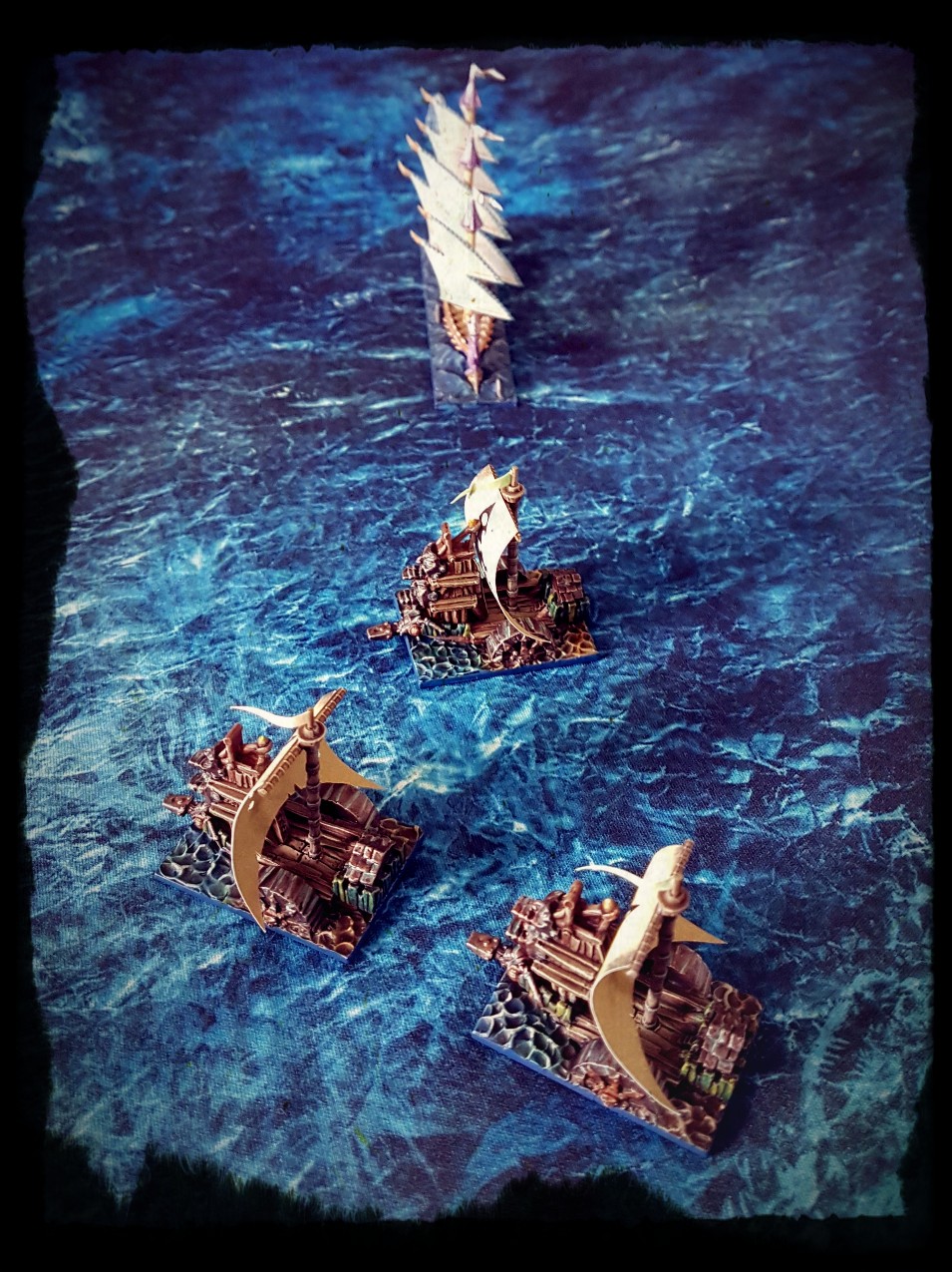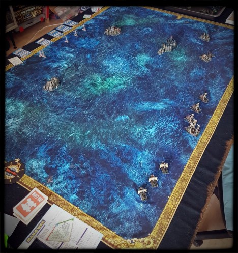 The playing surface is the mat from Dreadfleet. It’s pretty good. It looks nice and doesn’t crease easily, although it is a little light and inclined to shift if leaned on etc.