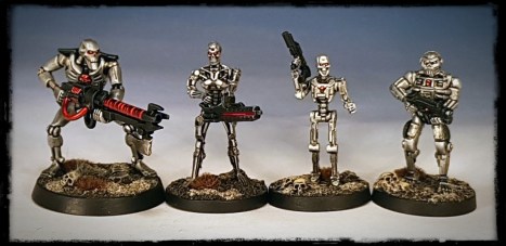 Obviously in synergy with my ongoing Necron project, I sort of ended up with these models when buying some Necron items from a friend. On a whim last week I decided to paint them and get them ready for a lifetime of listening to terrible impersonations of Schwarzenegger.