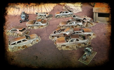 Love the idea of quick terrain and using the cheap cars. I`m a bit of a dystopian future fan and for me they need more rust,but thats just me. Perhaps the hairspray rust technique? Anyway loving the posts and the work, keep it coming.