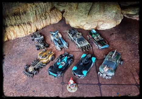 Lastly, we have all of the 24 items that were modified from the Hot Wheels Advent Calendar 2019 for my Gaslands Slay Ride Advent(ure) together.