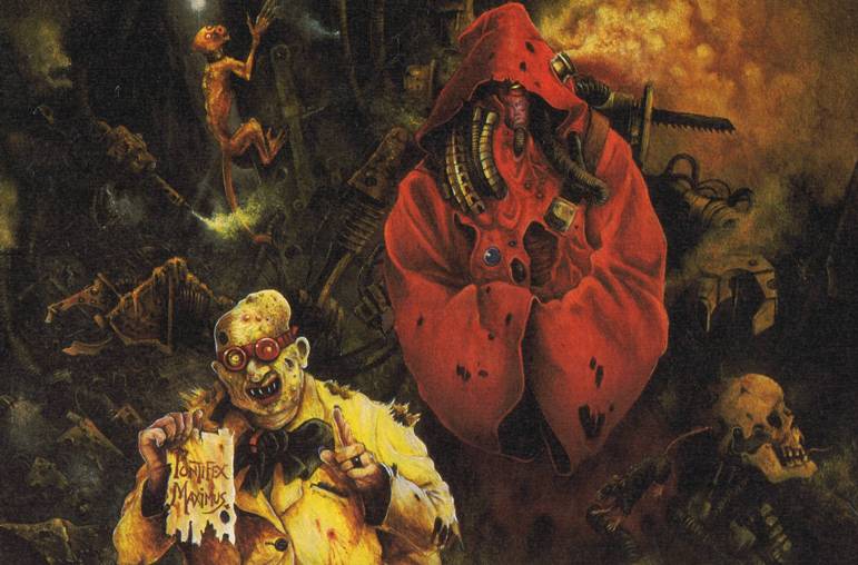 The model below is the definitive Adeptus Mechanicus model for me, a Bob Olley sculpt that I assume was partly based on the John Blanche illustration above, from Rogue Trader.
