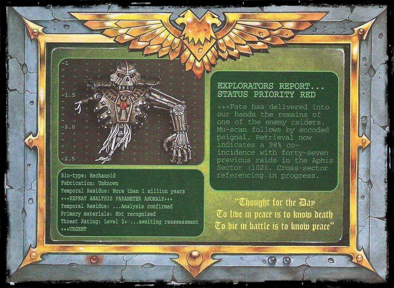 […] Adeptus Mechanicus Explorators @ Sho3box – Oh, hey, some proper Oldhammer! The author shares some old fashioned explorators that they’ve painted up and, with it, shares some background and images of the old Adeptus Mechanicus miniatures. This is a nice piece full of cool, retro images. […]