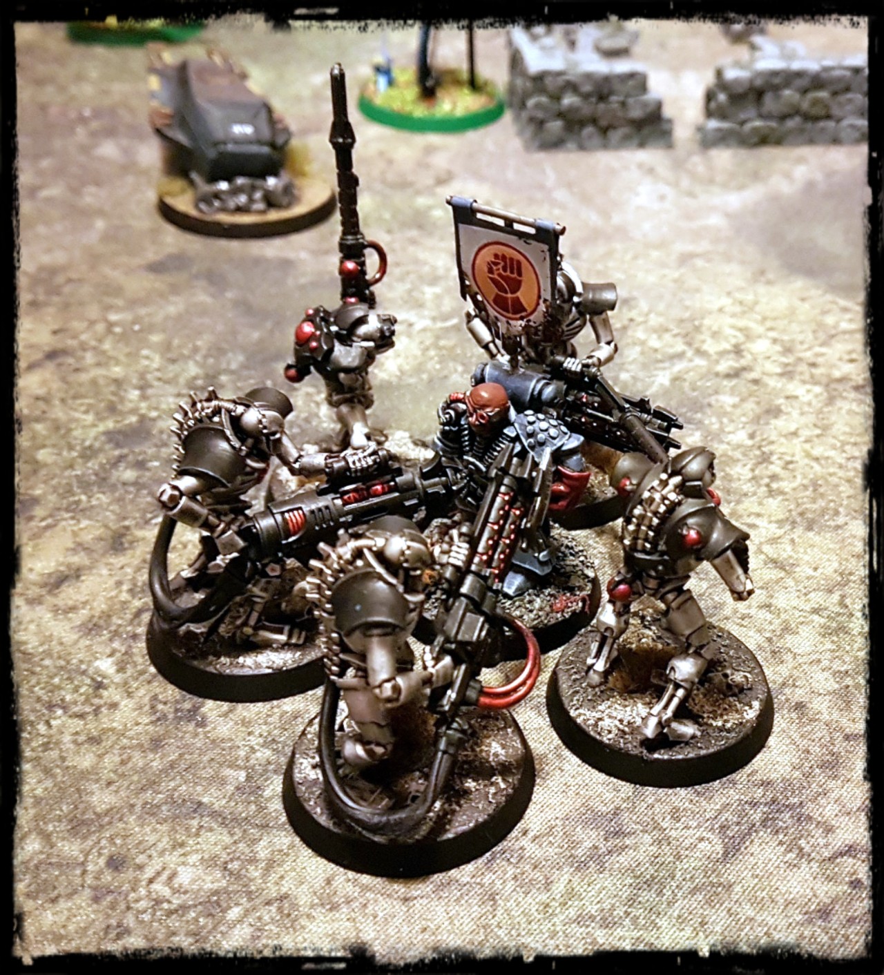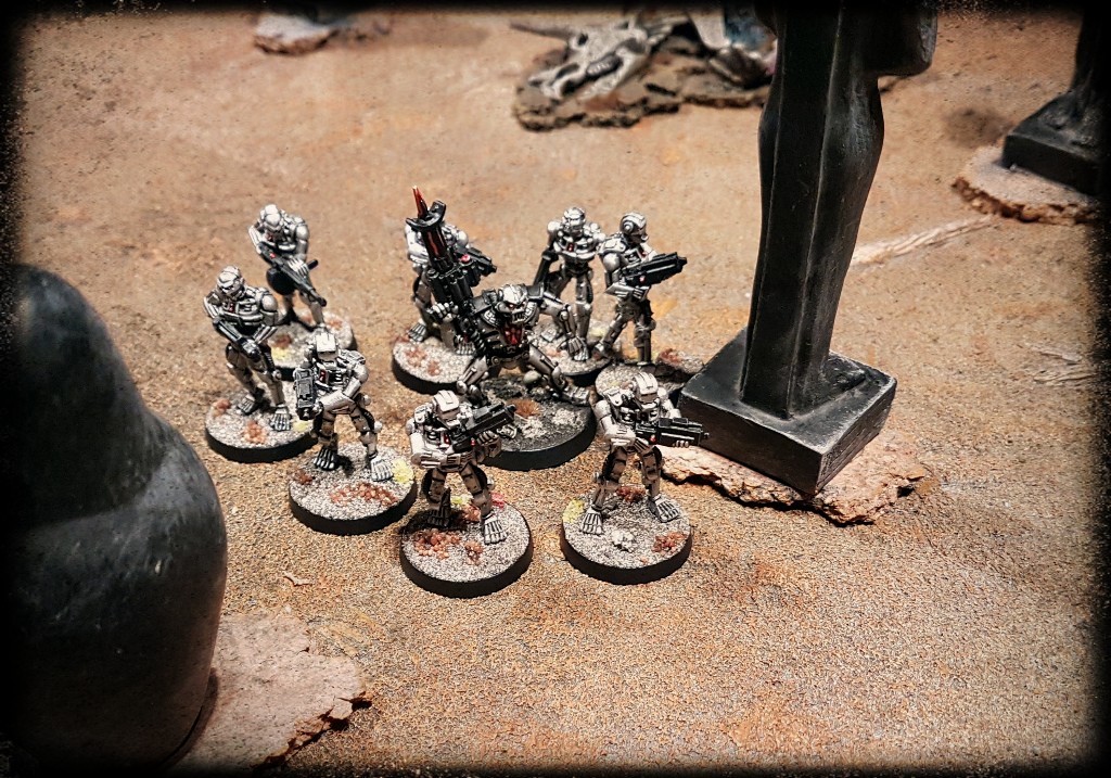 When I first started this project in 2012 I figured that going with colours and other references to the Terminator franchise could only increase my enjoyment of the project, which it has. It also meant that the largely ignored Terminator Miniatures Game (which is a lot of fun) ended up being absorbed/aligned with this as time went on. It’s not exactly a complex or cryptic reference to hang the project on, but I am happy with how it has worked out.