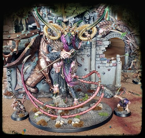 I’m not sure how many times I’ve looked at pics of this model (certainly a few), but this is the first time I’ve realised that the twin-fleshy ropes whipping round its body are in fact the verminlord’s tail(s) and not (as I’d assumed) a whip! That’s sufficient justification for sharing the rear view, but equally, I love the colour variation you’ve managed to achieve with the back fur. Was it achieved through different base colours or tonal washes?