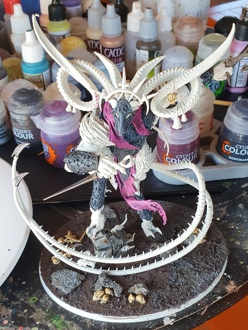 By the time 2020 rolled around, I was back painting ninja, ratman ninja this time. Spevna suggested to a few mates that we each aim to paint a greater daemon model by a fixed date – just for fun, documented here – and all of sudden it was Verminlord time.