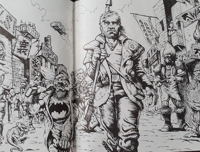 For a geeky obsessive kid like I was (rather than the hip, streetwise, finger-on-the-pulse, “Fonz-like” middle-aged man that I became… [CRICKET SOUNDS]), the illustrations, scenario hooks, homemade terrain and loosely but evocatively described setting meant that there were actually people out there with the same interests that I had. Not only that, but those people were adults, making a living out of creating things like this.