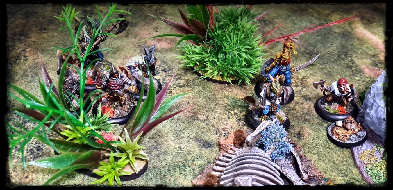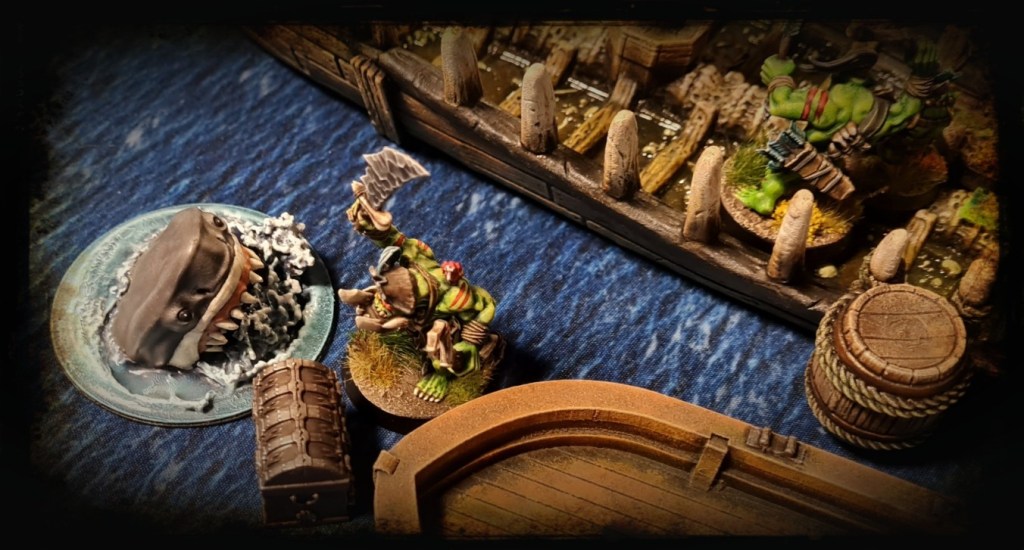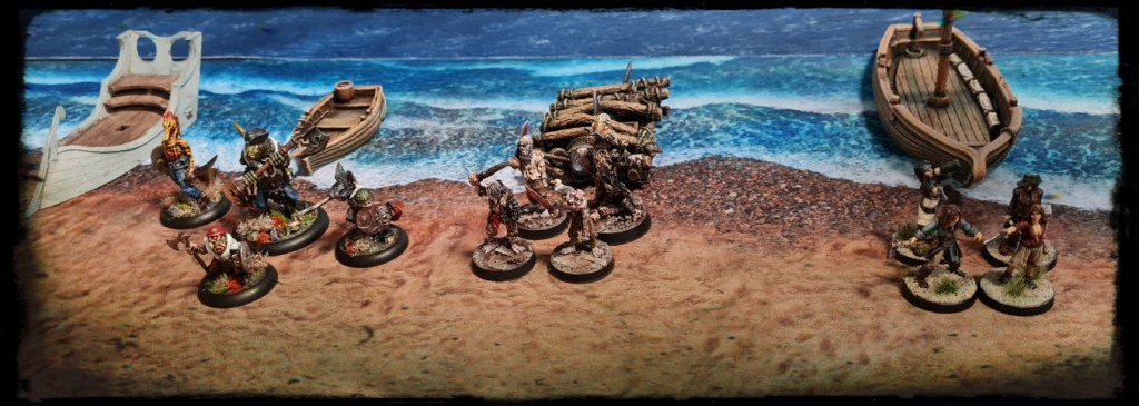 Fast forward through multiple proposed/cancelled dates, venues, attendees etc and the other logistical issues of the last few years, and we finally get to April 2022, where six of us met with our various pirate and “lost world” themed crews at Underworld Gaming, Dublin, where and spent a weekend making dad-jokes, doing bad pirate voices and watching our little men punch sharks, dinosaurs and each other.