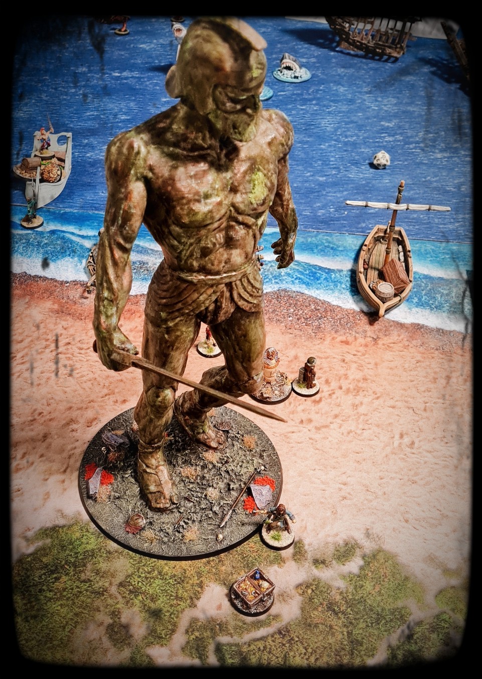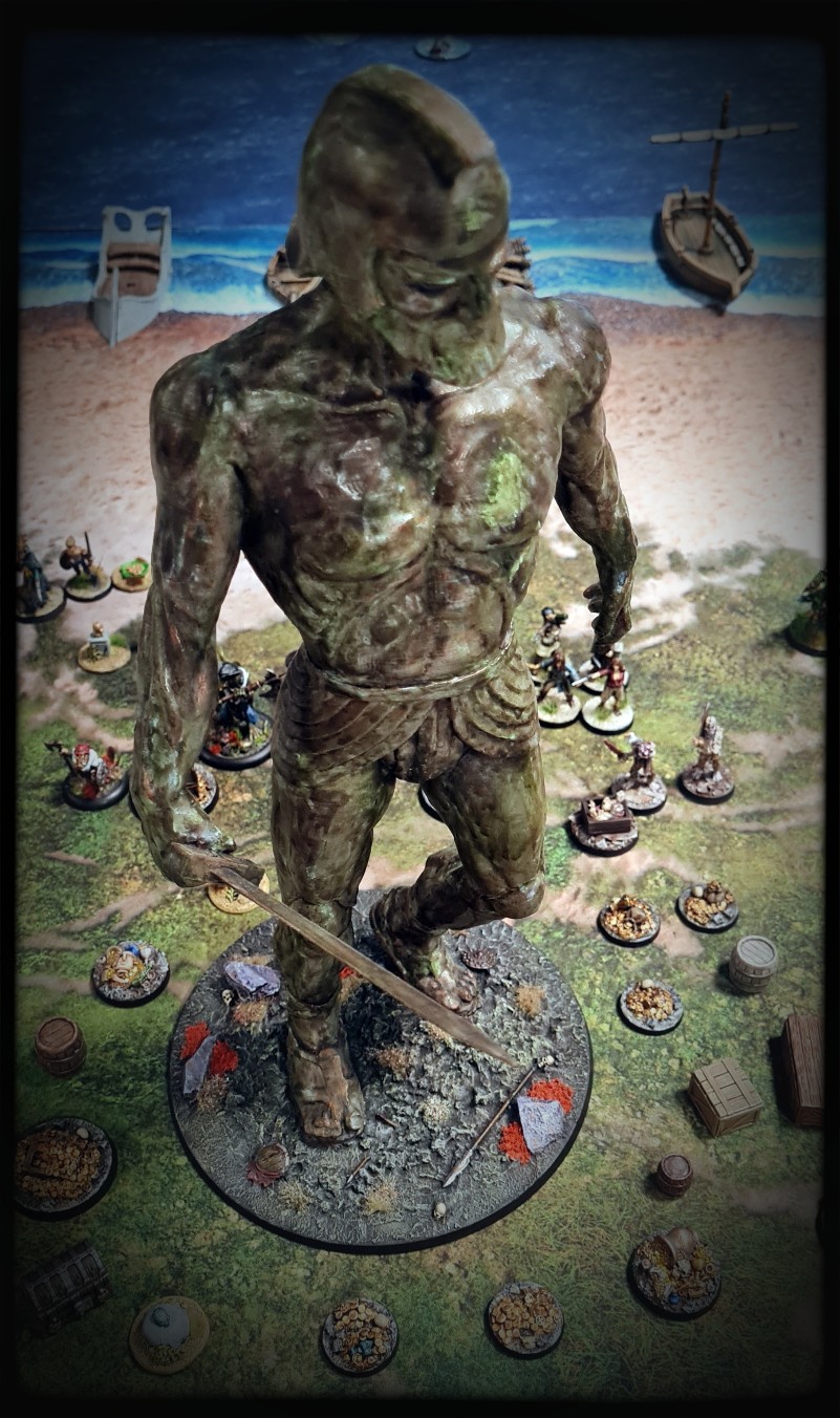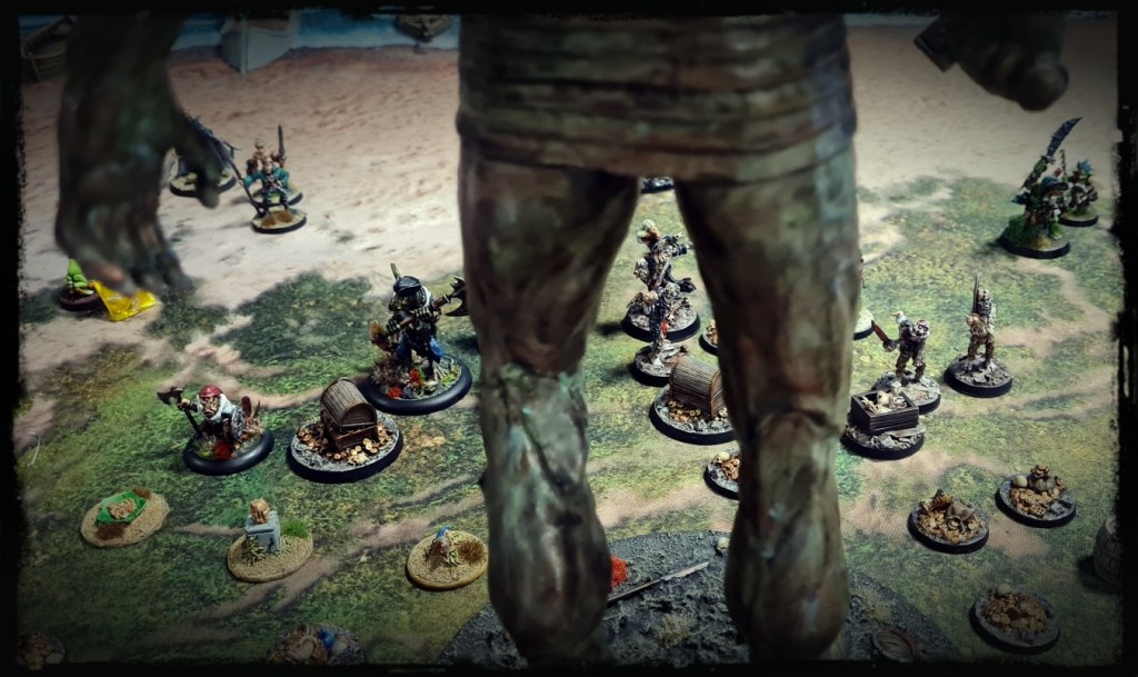 Inevitably a “miniature” like Talos is going to determine a lot of what happens in the games that it is involved in, which can disenfranchise players a bit. Mikko and Alex put together rules that made Talos precisely as scary as you might expect – booting scallywags out to sea, treading on bosuns, resisting broadsides from offshore etc – but allowed us to still have a a fun game where players at least had some agency.