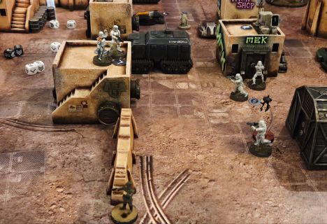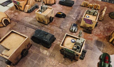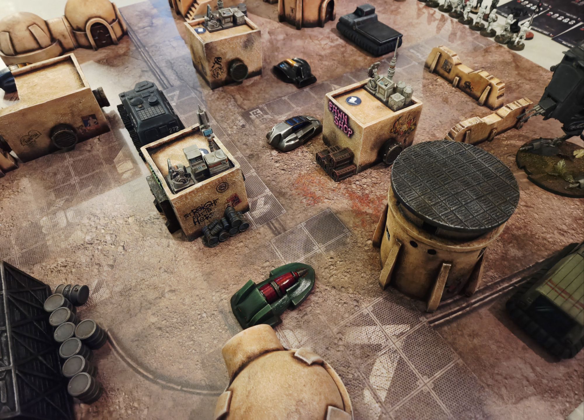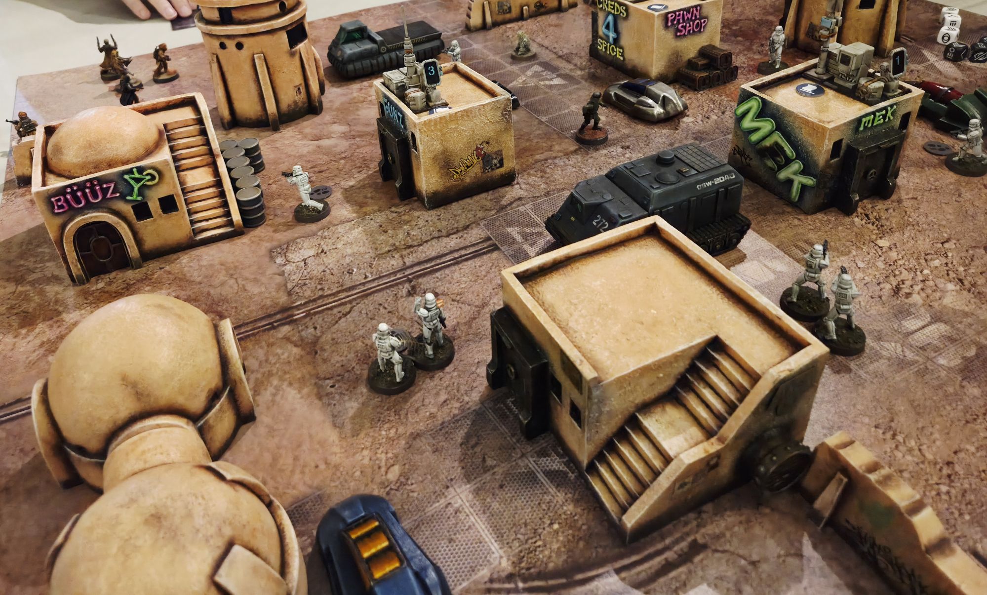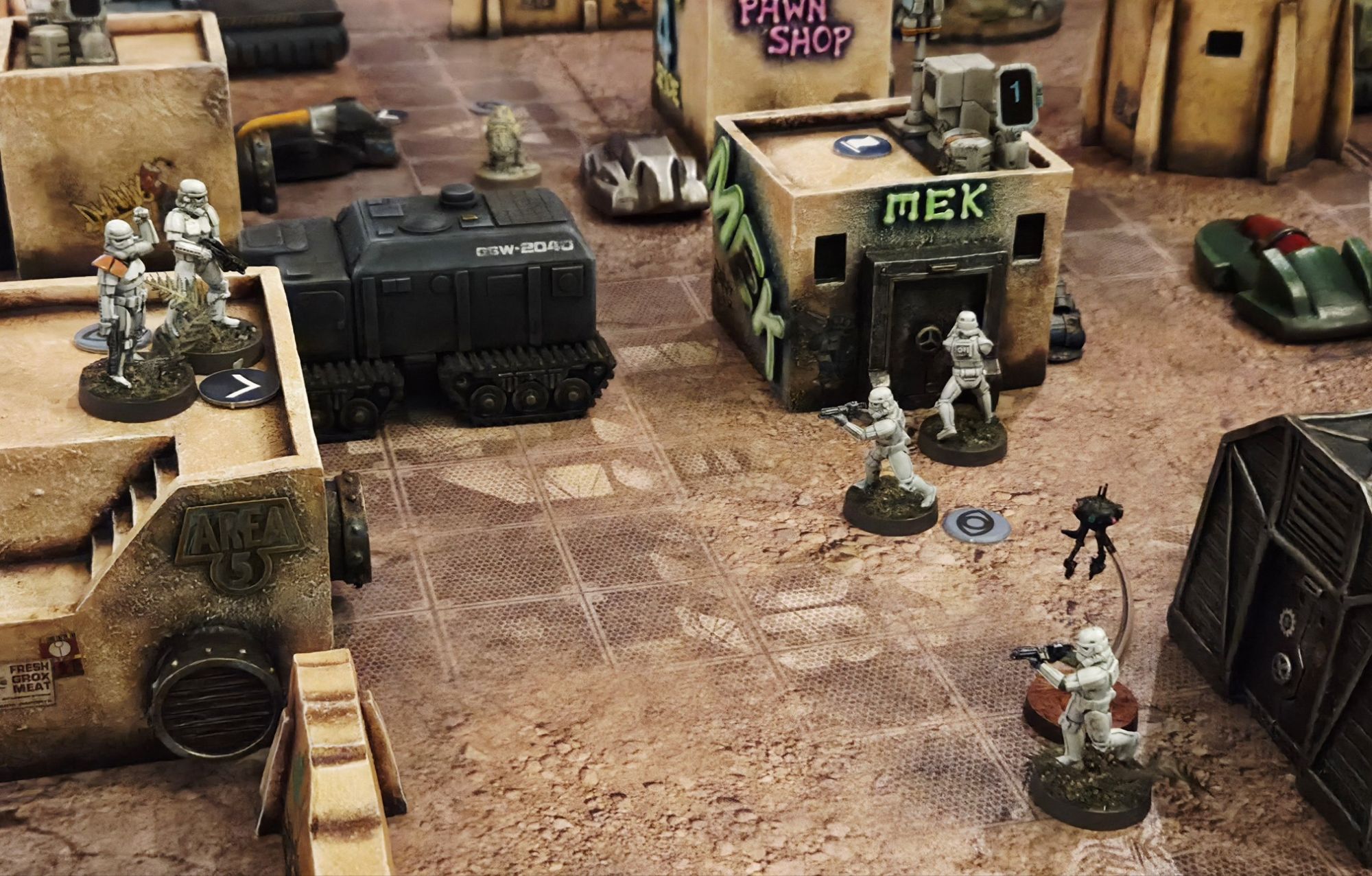 1. That’s a PHENOMENAL table! I’d completely forgotten about this terrain set, as good as it is. A good grimy street fight, it is indeed Andor-flavored. All you’re missing is is a transparent figure of Maarva Andor…