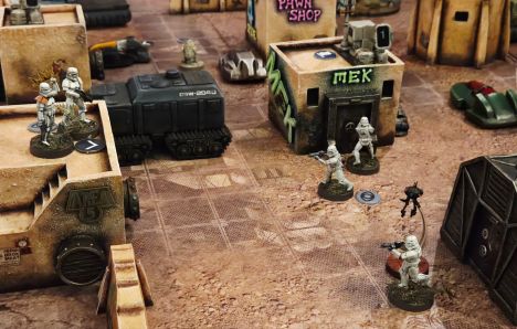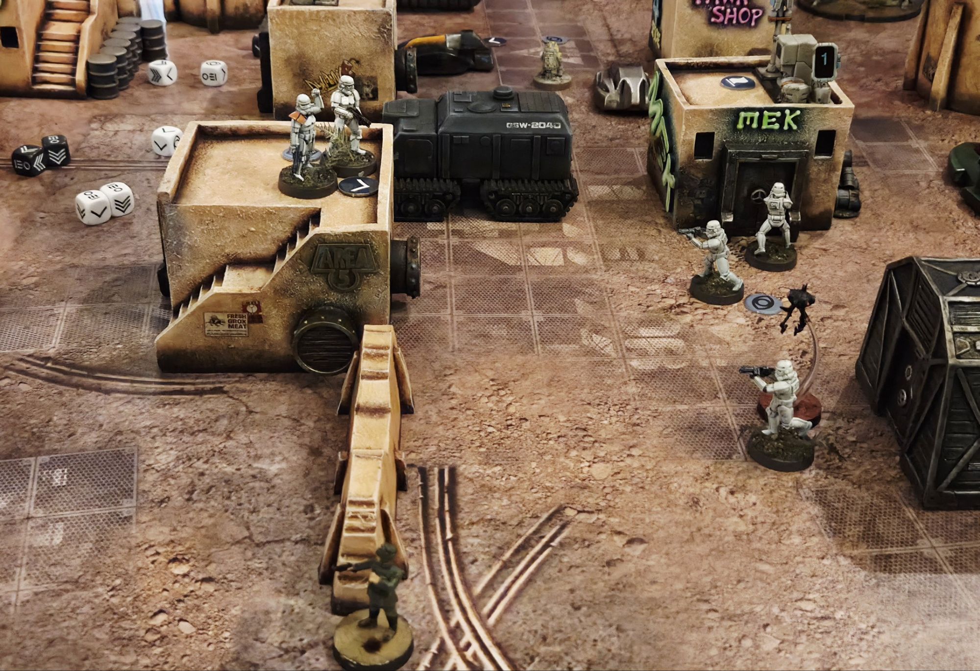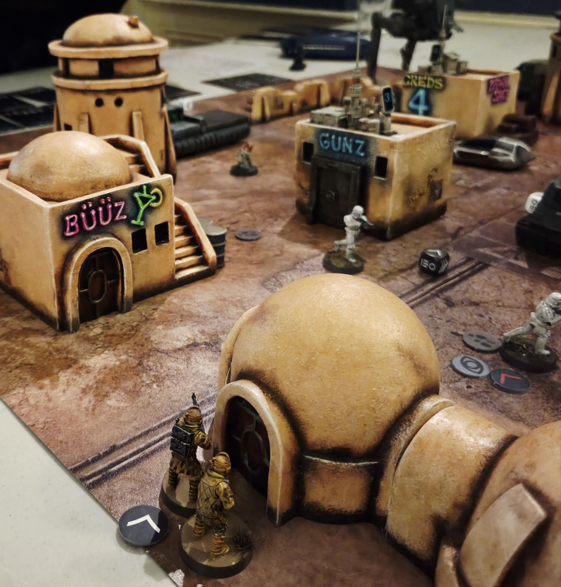 0200hrs and Star Wars went together like salt and caramel, so at the first opportunity I supplied the terrain (my Mos Xcellent stuff primarily) and a buddy supplied the miniatures for both sides. The game looked pretty good – my not-so-inner-nine-year-old was very impressed.