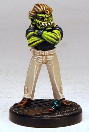 When playing Gorkamorka a couple of years ago, I noted that it would be convenient and kinda funny to have a dedicated model to represent “Da Captive” that crops up in a few of the scenarios. After the days gaming was done, while we sat in the man-cave having a couple of drinks and shooting-the-shit, I dug around and found an old Heroclix “Beast” miniature that had a scampering, tail-between-its-legs look that seemed fit for the purpose.