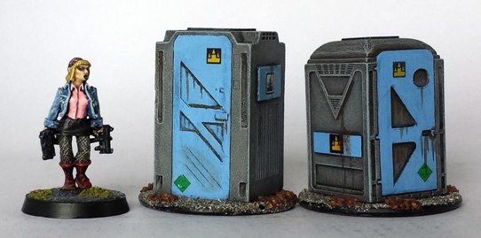 A couple of years ago while I was working on a lot of zombie and survivor miniatures I bought a pair of miniature resin portaloos/portapottys from Fenris Games. These were planned for use as respawn/reinforcement points in L4D inspired zombie games. I never got around to painting them though. Until now that is.