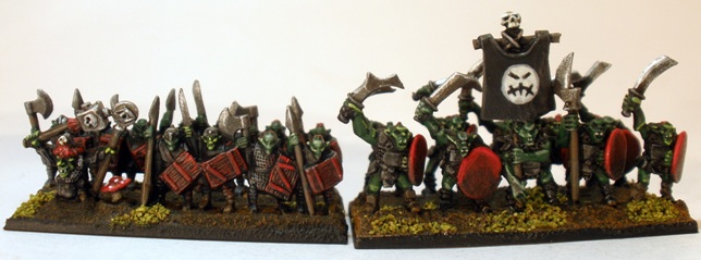 Despite all of my whining I still like these guys quite a bit. Their particularly massive stature makes them look rather threatening alongside the front of my second goblin unit.