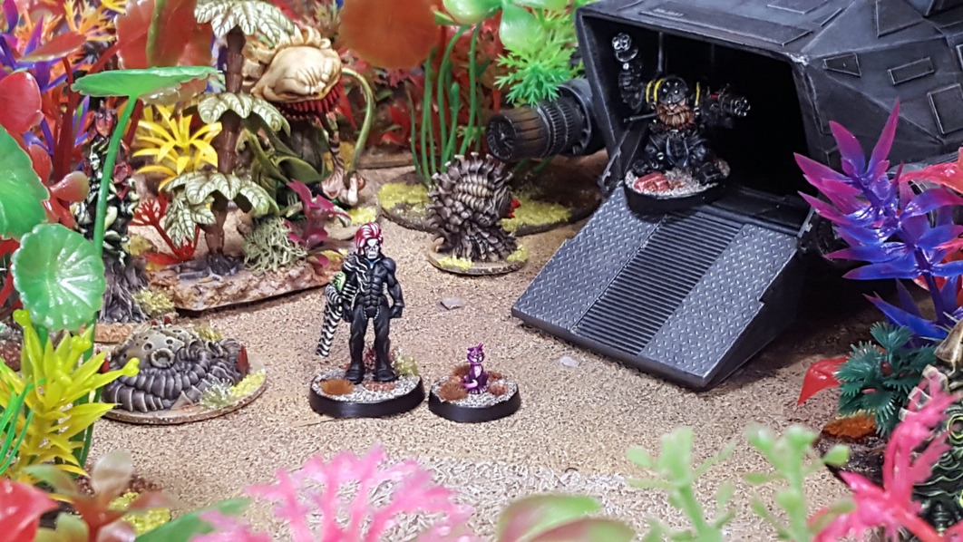 Eldar Outcast L’Oreal Wangst and newly psychically bonded gyrinx Cassis step from the “Free Candy” onto the surface of Imp.Reg: 450-495 “Kyaneos” under the watchful eye of Stern Woorning, a squat of questionable honour.
