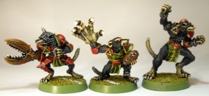 I am not sure at what point it seemed like a good idea to end up with three Blood Bowl rat-ogres, but it happened. Funnily enough I think that the old hairy rat-ogres look a little more like Blood Bowl players than Headsplitter (centre) does.